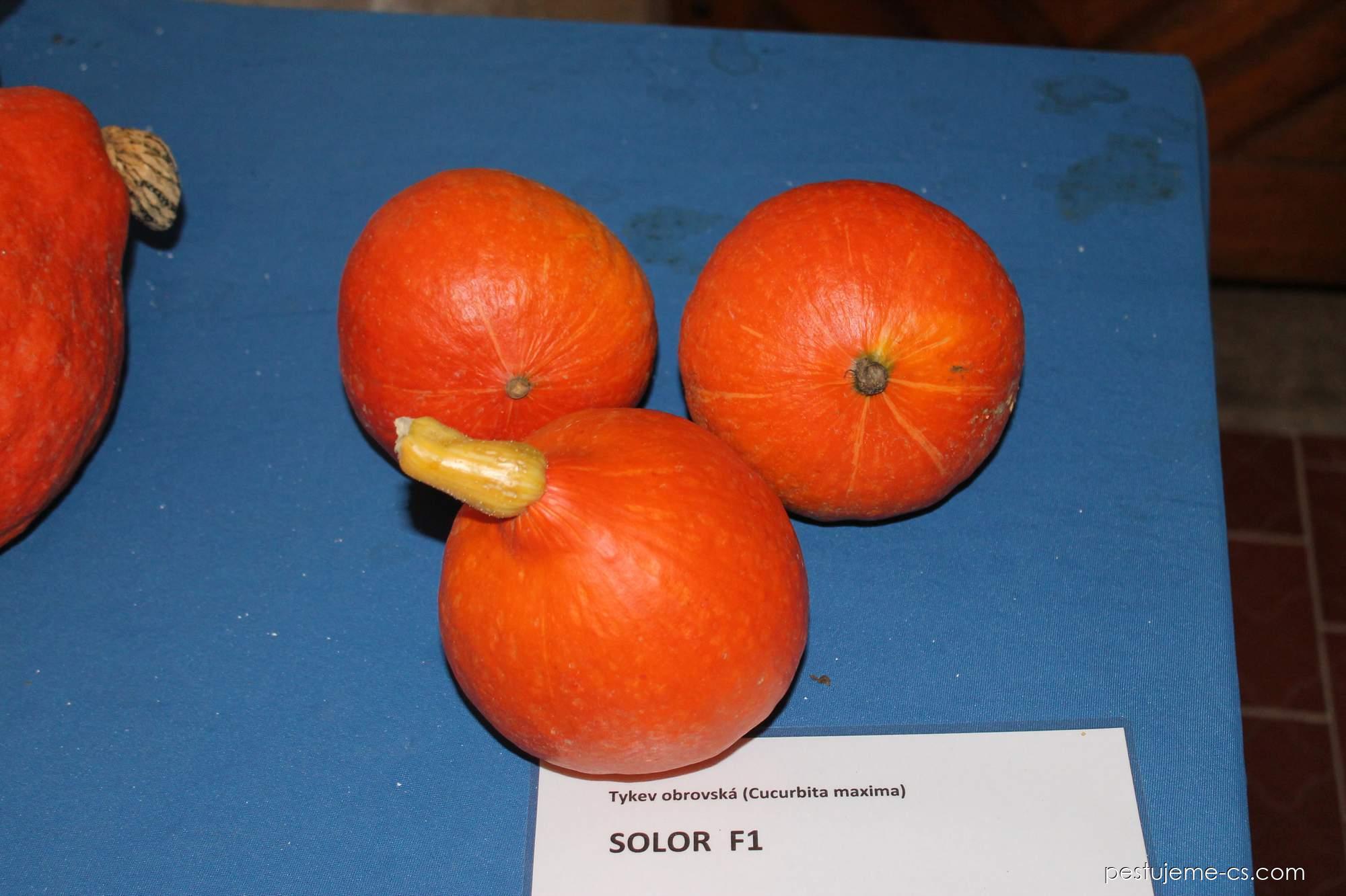 Tykev obrovská 'Solor F1' - Cucurbita maximaCucurbita maxima 'Solor F1'; Čeleď: Cucurbitaceae - tykvovité Tmavě oranžově probarvená tykev s tuhou tmavou dužninou. Plody mají tmavě oranžovou až tmavě červenou slupku, tvarově a velikostně jsou velmi vyrovnané. Tato odrůda je výborně skladovatelná, má o 2 až 3 měsíce delší skladovatelnost a je o 20 až 30 % výnosnější… |